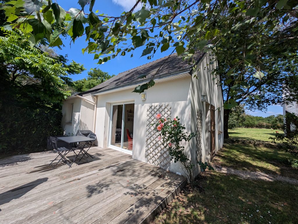 Cette maison de plain pied vous accueille par un salon et sa cuisine ouverte. Vous profiterez d’une chambre avec un lit double de 160/200, d’une chambre avec un lit gigogne de 90/190 & d’une salle d’eau avec WC.